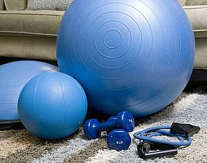 (Gymnastikball, Theraband usw.)